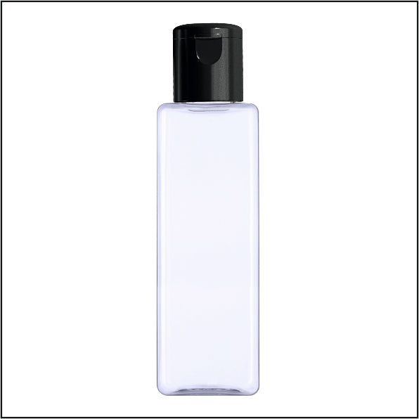 ( ZMT120 ) SQUARE SHAPE TRANSPARENT CLEAR PET BOTTLE WITH BLACK FLIPTOP CAP Available Size: 100ml & 200ml