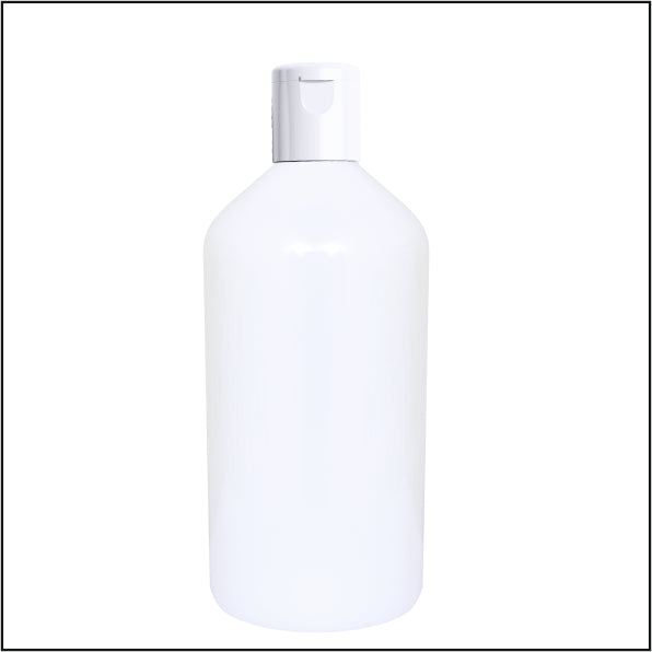 Milky White Bottle With White Flip Top Cap.
